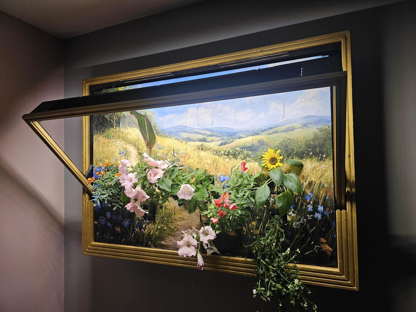 It uses built-in hydroponics and lighting to grow plants behind a real canvas. No soil, no mess.Q: Do I need to fertilize anything?